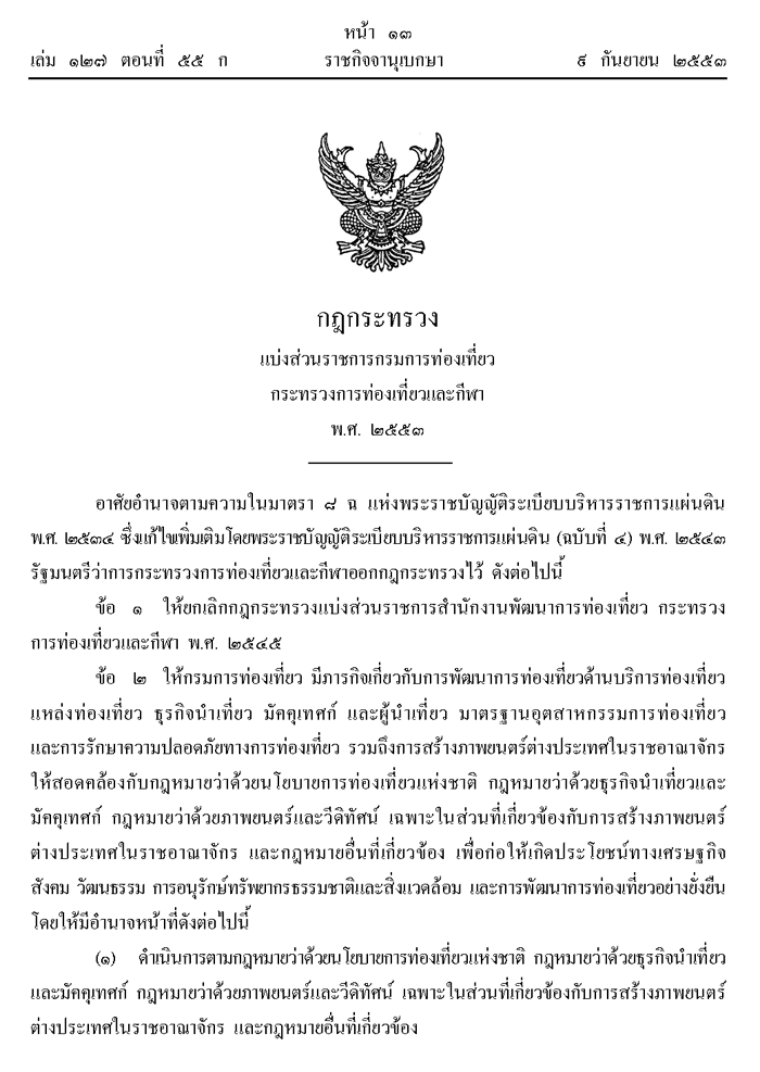 - กฏหมายการท่องเที่ยว DEPARTMENT OF TOURISM