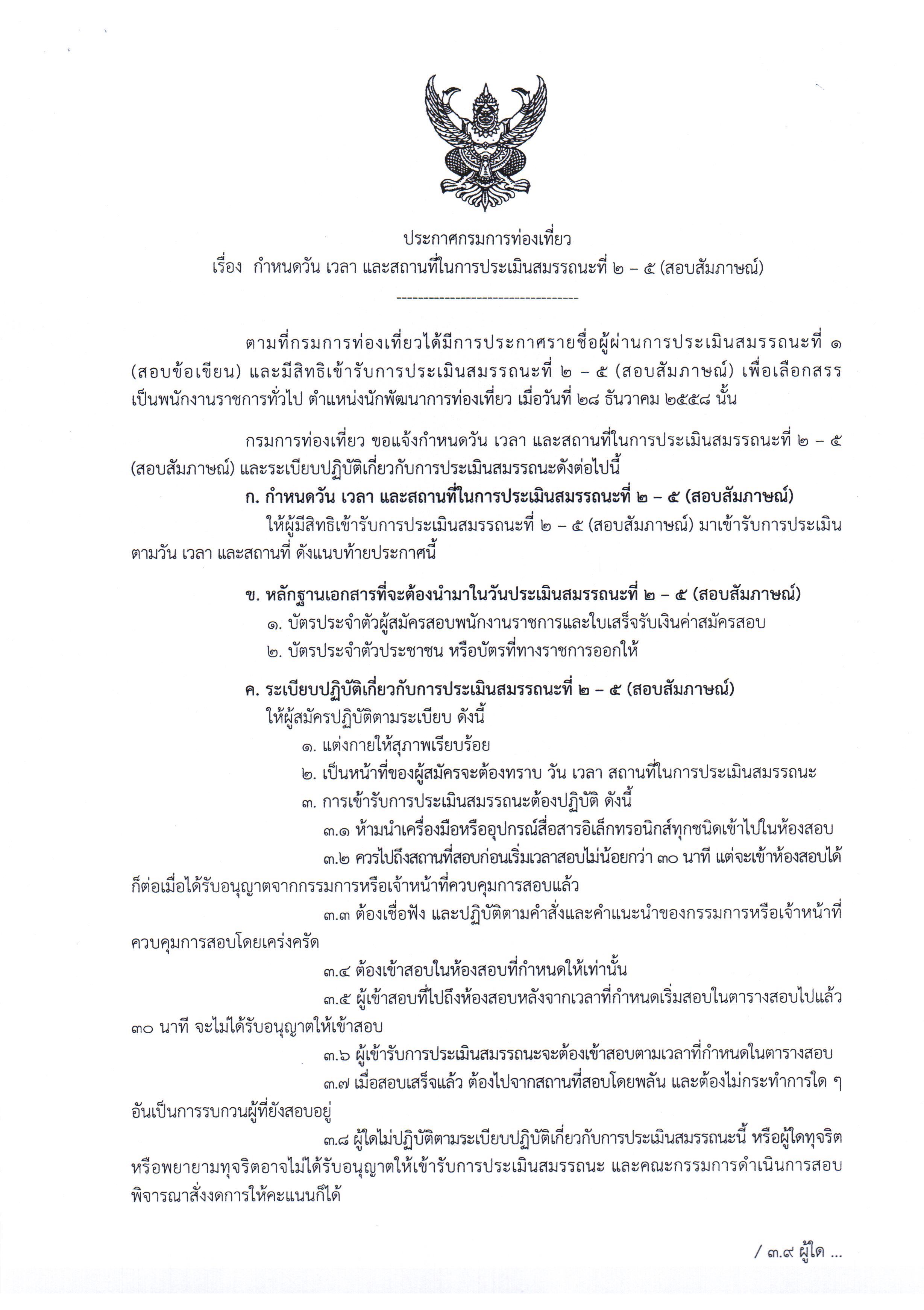 กำหนดวัน เวลา และสถานที่ในการประเมินสมรรถนะที่ ๒-๕ (สอบสัมภาษณ์) วันที่ประกาศ 15 ม.ค. 2559 ดาวน์โหลดไฟล์เอกสาร